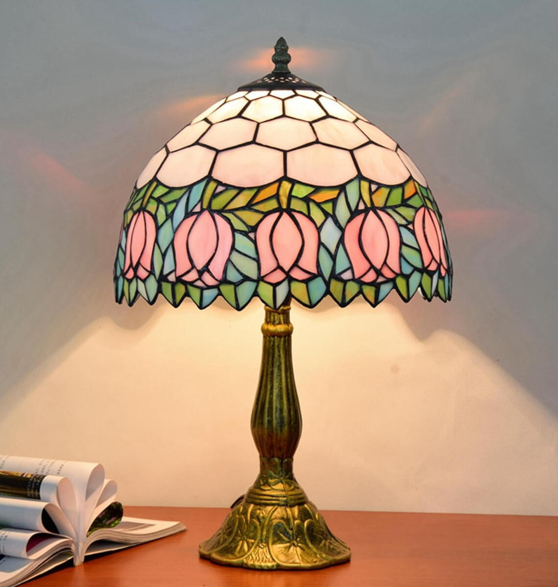 Stained glass table lamp, chosen to add a touch of colour to traditional interiors with gentle, ambient light