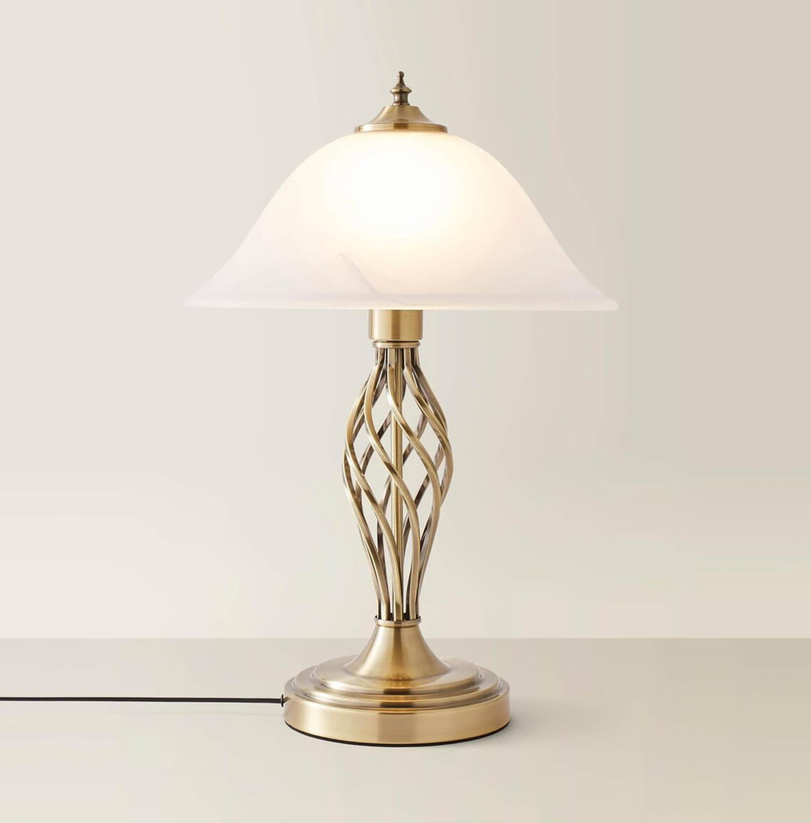 A traditional-inspired lamp with a soft cream pleated shade and a gentle touch dimmer that suits hallways, bedrooms and living rooms in period homes.