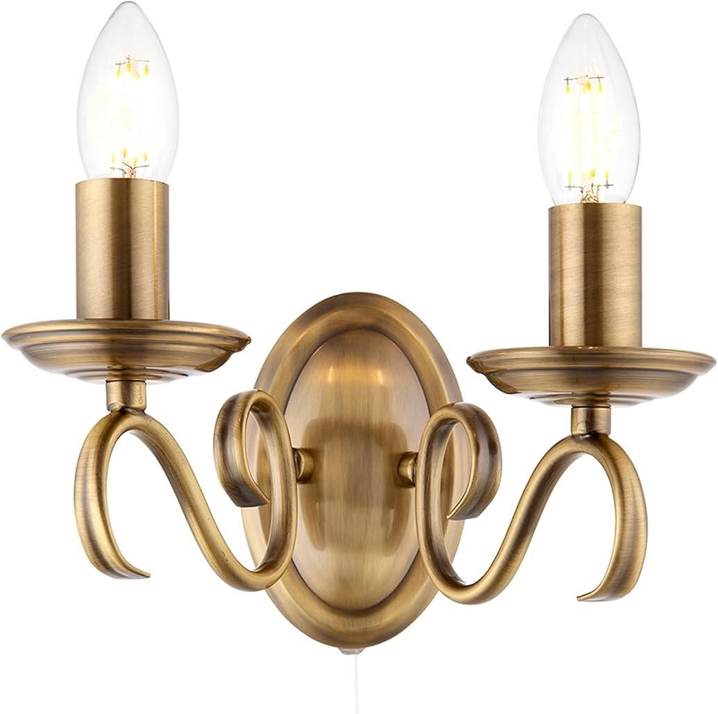Antique brass wall sconce with pull cord switch, perfect for class period home living rooms and hallways