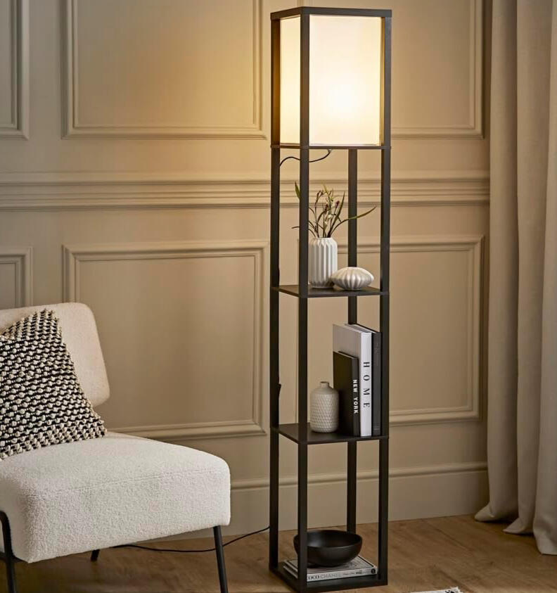 Floor lamp with warm light and built in shelves. Perfect for styling your space in Georgian and later period homes