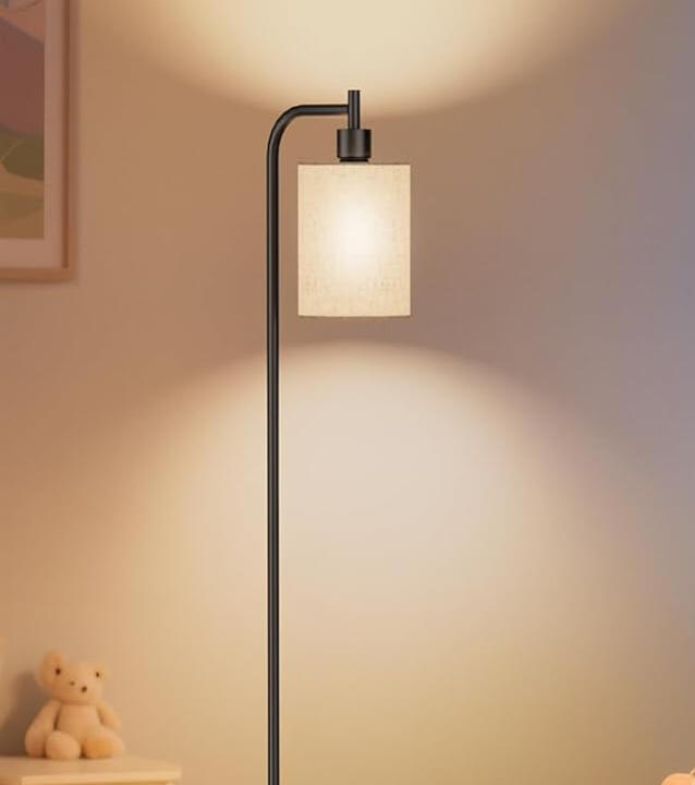 A discreet floor lamp with textured linen shade and dimmable lights. Perfect for adding warm light to a living room or bedroom