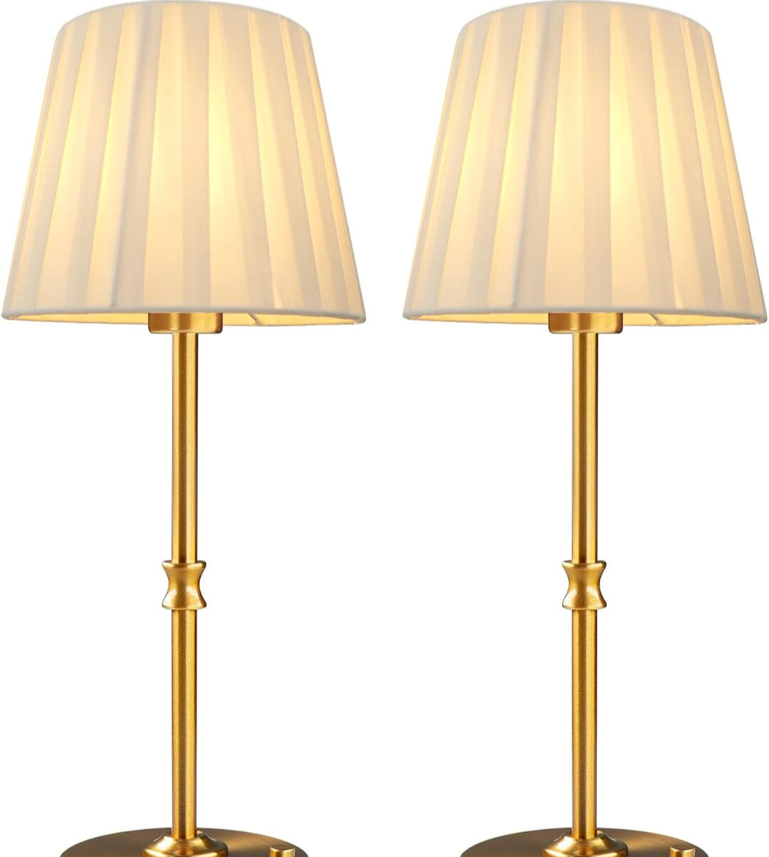 Traditional style pleated table lamp pair. Rechargable so no cables, making them easy to locate in relaxing spaces within a period home.