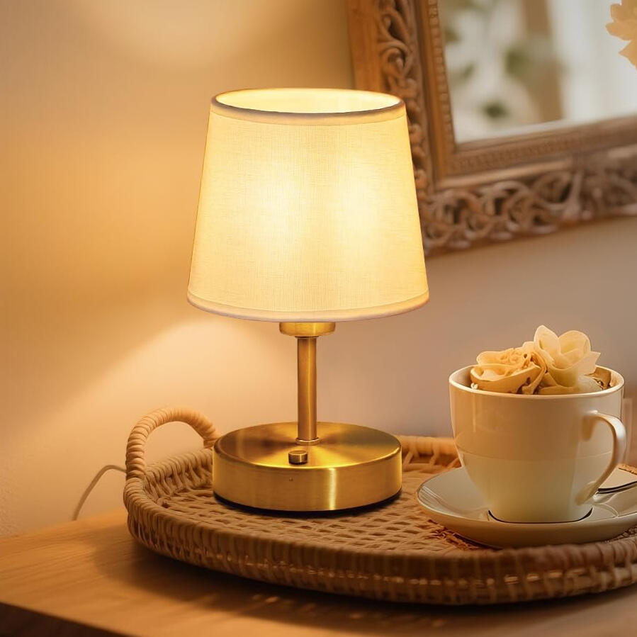 A traditional-inspired lamp with a soft pleated shade and a gentle touch dimmer that suits hallways, bedrooms and living rooms in period homes.