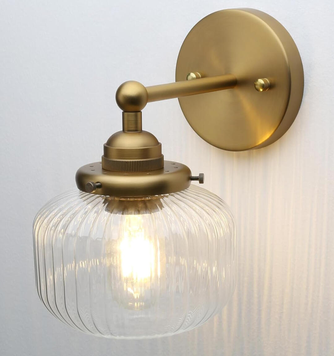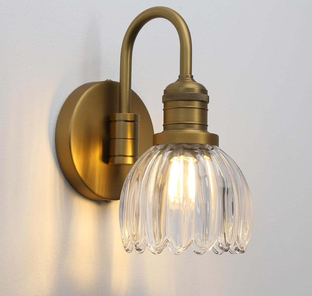 A beautiful ribbed glass wall light in antique brass, perfect for adding texture to a traditional bedroom or living room